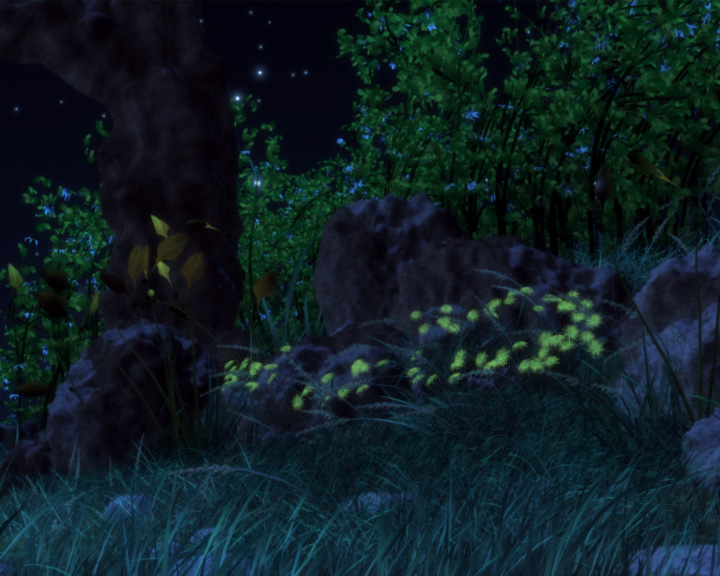 Dieses Projekt entstand während meiner Ausbildung zum Mediengestalter Bild und Ton bei der Magic Media Company. ZBrush: Die beiden dicken, alten Bäume, die am Anfang von Einstellung 1 im Vordergrund zu sehen sind. Mein erster Versuch in diesem Programm, das sich hervorragend für organisches Modellieren mit sehr hohem Detailreichtum eignet. Digital Fusion: In der ersten Einstellung alles bis auf die erste Baumreihe (Paint Effects) und der Eiche im Vordergrund. Alle Szenen sind Farbkorregiert und haben einen leichten "softglow", um sie etwas märchenhafter zu machen. Photoshop: Bearbeitung von Texturen und Bildvorlagen für Digital Fusion. Trennung des Hintergrundes von Einstellung 1 in mehrere Ebenen um in Digital Fusion diese bei der Kamerafahrt leicht ineinander zu verschieben und so einen besseren Tiefeneindruck zu bekommen. |